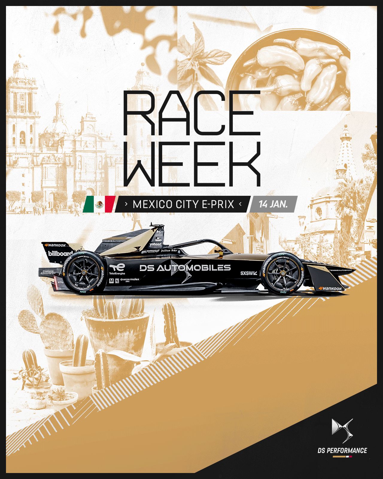 Der Startschuss zur 9. Saison der ABB FIA Formel-E-Weltmeisterschaft fällt am Samstag, 14. Januar. In Mexiko-City feiern die vollelektrischen Rennwagen der dritten Generation (Gen3) und damit auch der DS E-TENSE FE23 ihr Renndebüt. Für das DS PENSKE Team gehen der amtierende Weltmeister Stoffel Vandoorne und der Doppel-Champion Jean-Éric Vergne an den Start. Gemeinsam wollen sie an die Erfolge von 2019 und 2020 anknüpfen, in denen jeweils der Titel in Fahrer- und Teamwertung errungen werden konnte.