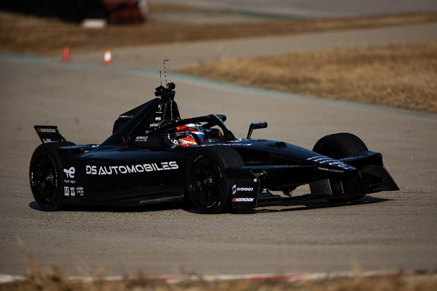 In Zusammenarbeit mit PENSKE AUTOSPORT testete das DS Performance Team die Leistung des mit neuen Reifen ausgestatteten Allradfahrzeugs und die Aerodynamik des neuesten Karosserie-Kits, das zum ersten Mal ausprobiert wurde. Nach 200 Testrunden haben die Ingenieure wichtige Informationen über den neuen Boliden gesammelt, der mit einer Beschleunigung von 0 bis 100 km/h in weniger als zwei Sekunden wesentlich schneller und effizienter ist als der aktuelle DS E-TENSE FE23.